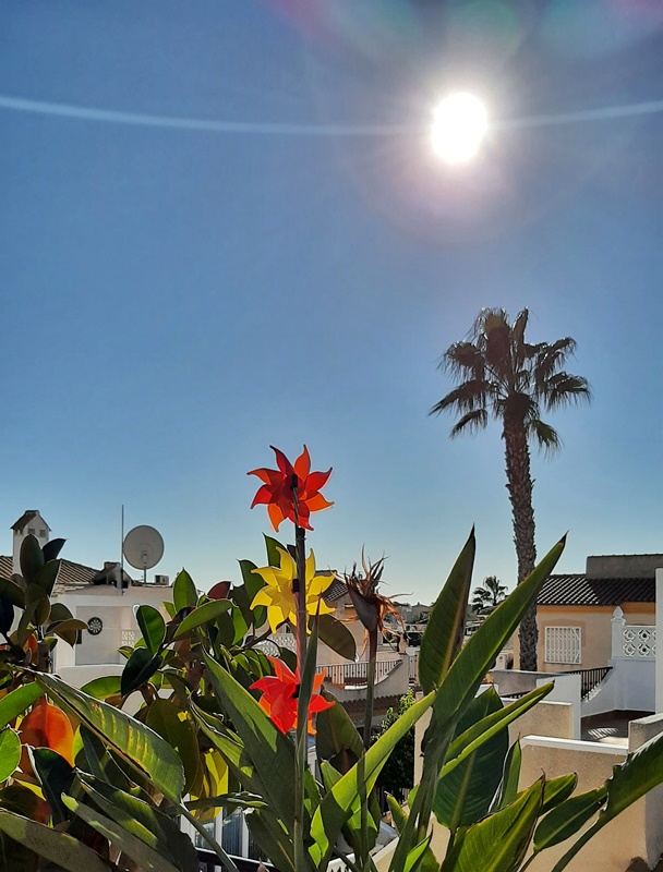 När gubben kom upp på takterrassen satte vi igång med lite blomskötsel. Klippte ner några som nu får gå i vintervila och jag sopade hela takterrassen. Spola golvet ordentligt får vi göra när vi kommer hem igen från Sverige.
